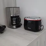 This property offers a fully furnished kitchen with a refrigerator, an oven, and glassware, along with coffee/tea making machines.